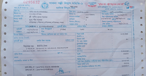 শ্রী অধীর কুমার সরকার পাবনা পল্লী বিদ্যুৎ সমিতি-১ এর গ্রাহক চাটমোহর পৌরশহরের জিরো পয়েন্ট এলাকার বাসিন্দা । আগস্ট মাসে তার বাড়ির বিদ্যুৎ বিল ছিল ৮২২ টাকা। তবে চলতি মাসে তার
